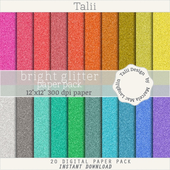 Rainbow Glitter Paper Bright Glitter 20 Bright Colors Glitter Digital Paper Rainbow Sparkles Backgrounds Gold Silver Red Pink Teal Blue